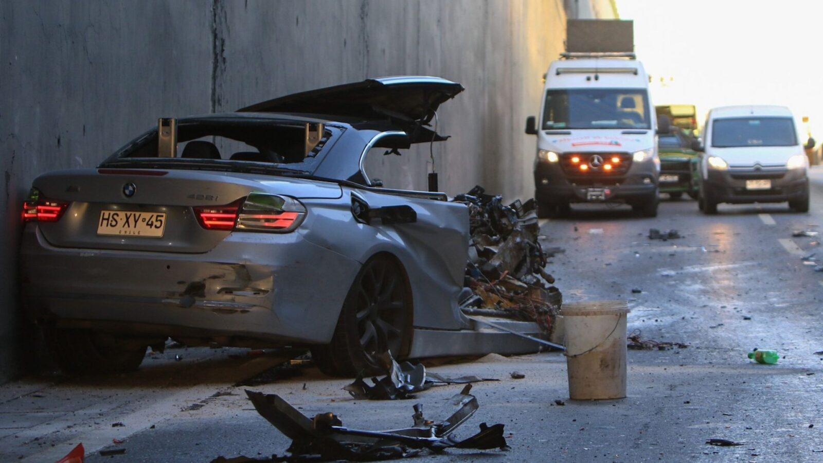 Producto de esto, la mujer que iba de copiloto salió eyectada del auto de alta gama, falleciendo en el lugar, por lo que se baraja que no utilizaba cinturón de seguridad. En tanto, el conductor solo terminó con una lesión leve en su muñeca, mientras que el vehículo terminó completamente destruido producto del choque.