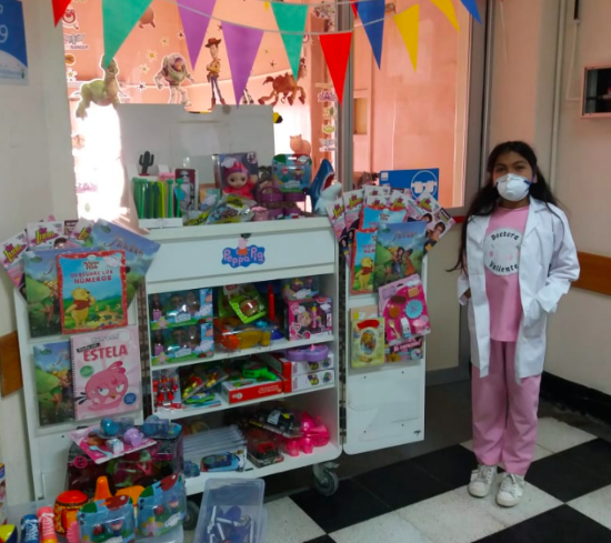 4. La biblioteca de juguetes: proyecto que consiste en un carrito rosado que implementará un sistema de préstamo de juguetes a niños en tratamiento médico o en espera de atención. A través de una identificación, los menores podrán disfrutar ambulatoriamente del juguete que escojan o llevarlo a su casa por un tiempo determinado. Este proyecto se implementará a contar de septiembre.