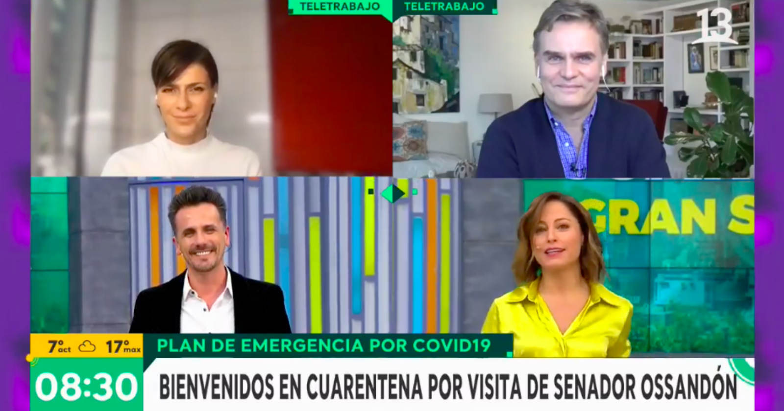 A esto se sumó lo adoptado por el programa Contigo En La Mañana de CHV, donde los animadores -Julio César Rodríguez y Monserrat Álvarez- también tuvieron que iniciar una cuarentena preventiva tras haber compartido con Ossandón en el programa.