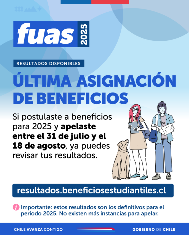 Esta entrega corresponde a la última publicación de resultados para quienes postularon inicialmente o renovaron beneficios como la gratuidad, diversas becas y el Fondo Solidario de Crédito Universitario (FSCU).