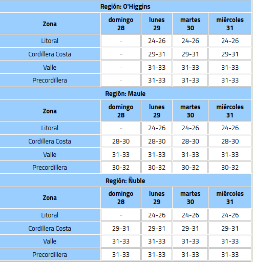 El clima podría estar aún más intenso en comunas como Rancagua, Curicó y Talca, donde se espera que las máximas alcancen los 35°C o 36°C.