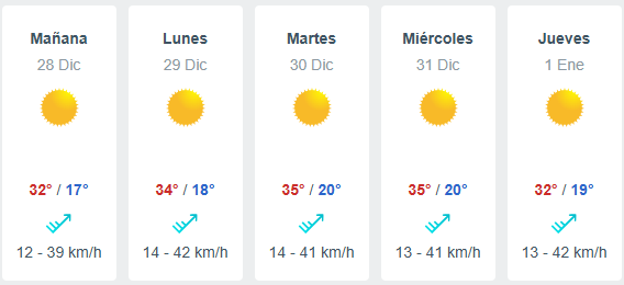 El lunes, se espera que los termómetros alcancen los 34°C en Santiago, mientras que el martes y el miércoles 31 de diciembre podrían llegar a los 35°C, según Meteored.