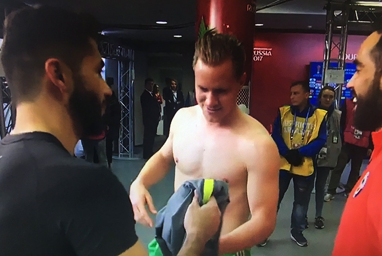 Al final del partido entre Alemania y Chile, los arqueros Ter Stegen, Johnny Herrera y Claudio Bravo sostuvieron un conversación “muy alegre”.