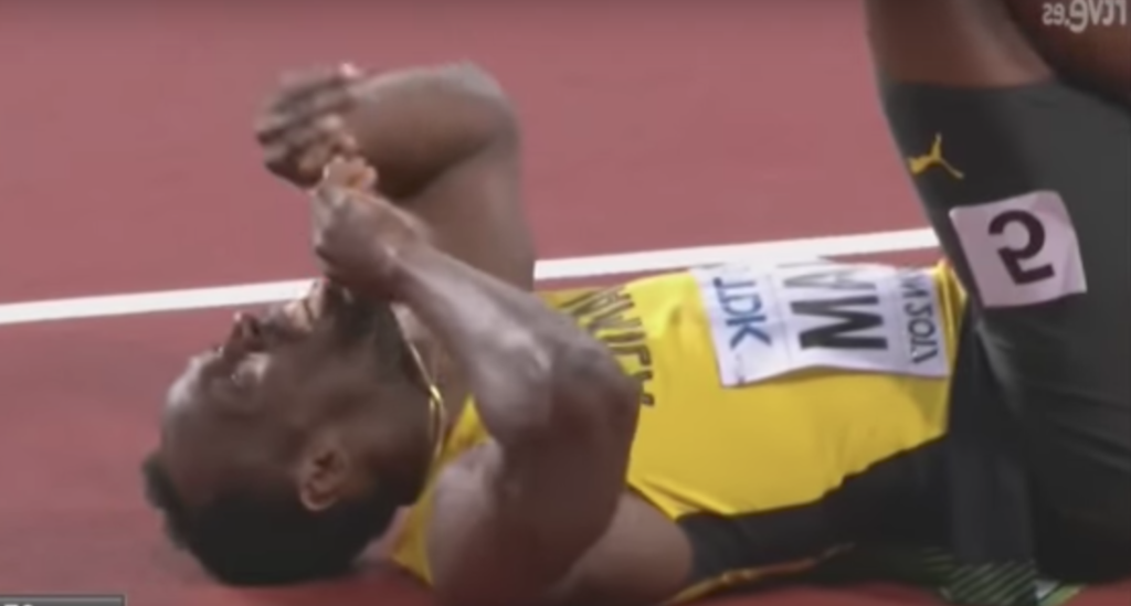 El corredor de Jamaica sufrió una lesión en su pierna izquierda a solo pasos de haber recibido el testimonio.