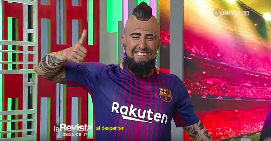 Es así como en el canal Unitel, el mismo imitador que en septiembre de 2017 se burló de Vidal por el autogol ante Paraguay, lo personificó vistiendo la indumentaria del equipo azulgrana.