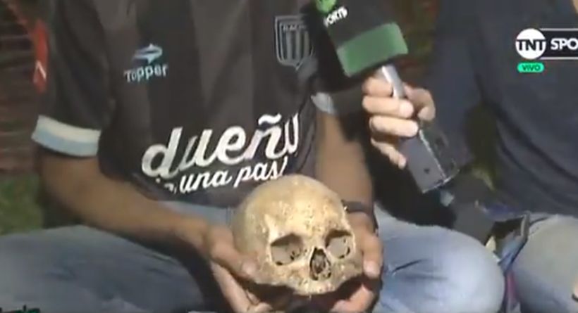 “Este es mi abuelo Valentín. Lo saqué del nicho y lo desenterré. Todo el tiempo (él fue) de Racing, siempre de Racing“, aseguró el hombre a TNT Sports, quien además aseguró que la osamenta era “la cábala” del club.