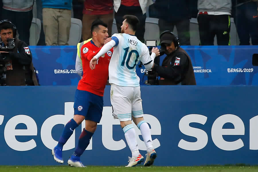 La pelea entre el argentino Lionel Messi y el chileno Gary Medel protagonizaron uno de los momentos más tensos del encuentro entre los Albicelestes y la Roja por el tercer lugar de la Copa América, el que se disputó en el estadio Arena Corithians de Sao Paulo, en Brasil.