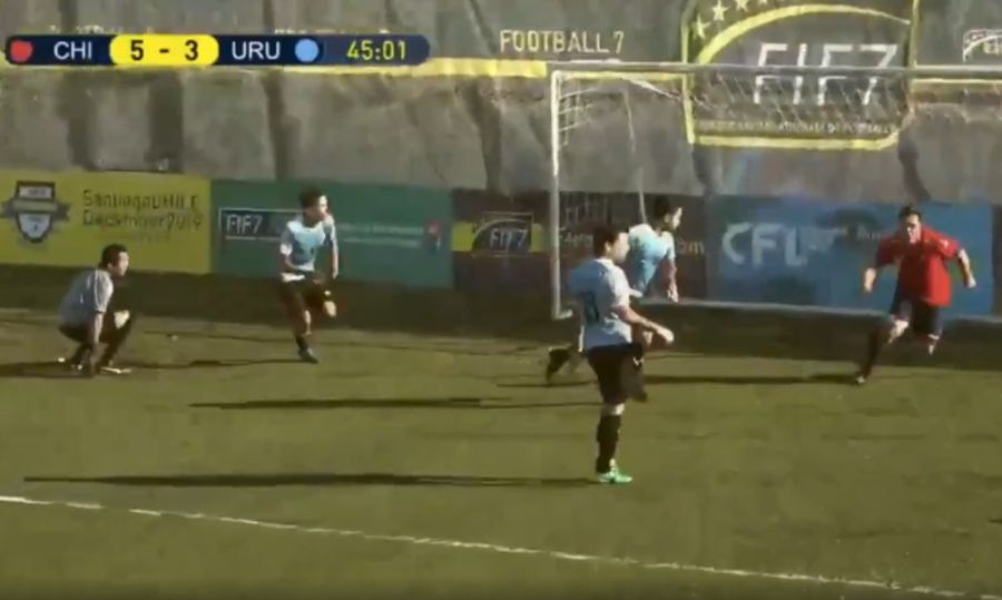 El hecho ocurrió durante la victoria 6-4 de la Roja sobre los charrúas, específicamente en el último de los goles de la escuadra nacional.