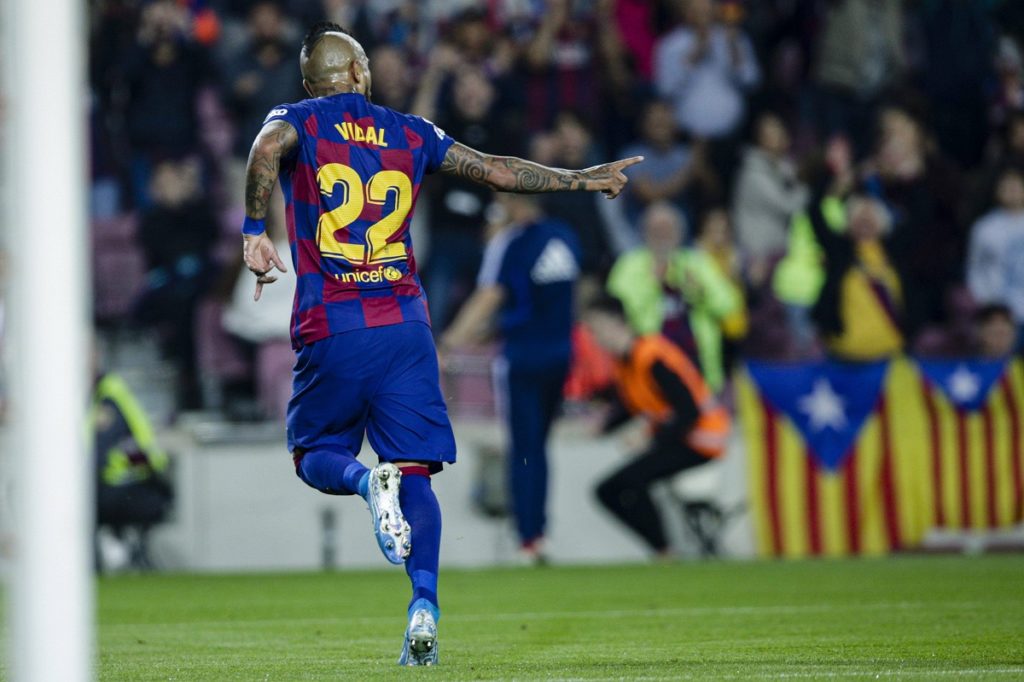 El mediocampista chileno Arturo Vidal llegó a 100 goles durante su aventura en el fútbol europeo, luego de marcar el sábado en el empate 2-2 del FC Barcelona ante el Espanyol por la 19ª fecha de la liga española 2019-2020.