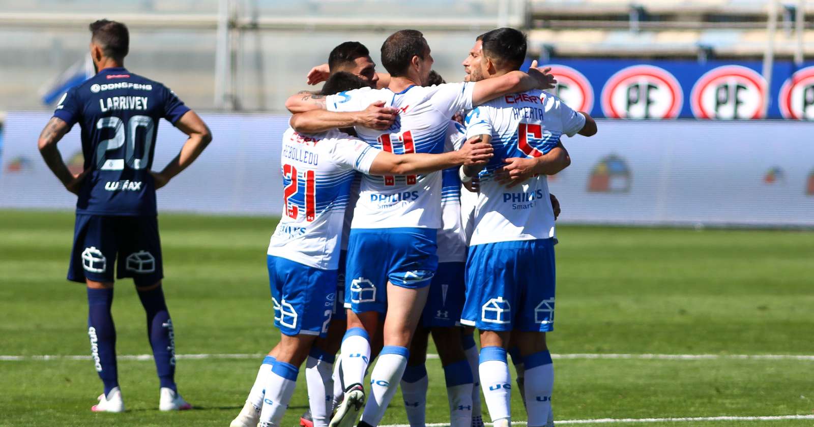 Universidad Católica (UC) no dejó espacio a dudas y se impuso en el clásico universitario goleando por 3-0 a la Universidad de Chile (U) en la decimotercera fecha del Campeonato Nacional 2020 disputado en el Estadio San Carlos de Apoquindo.