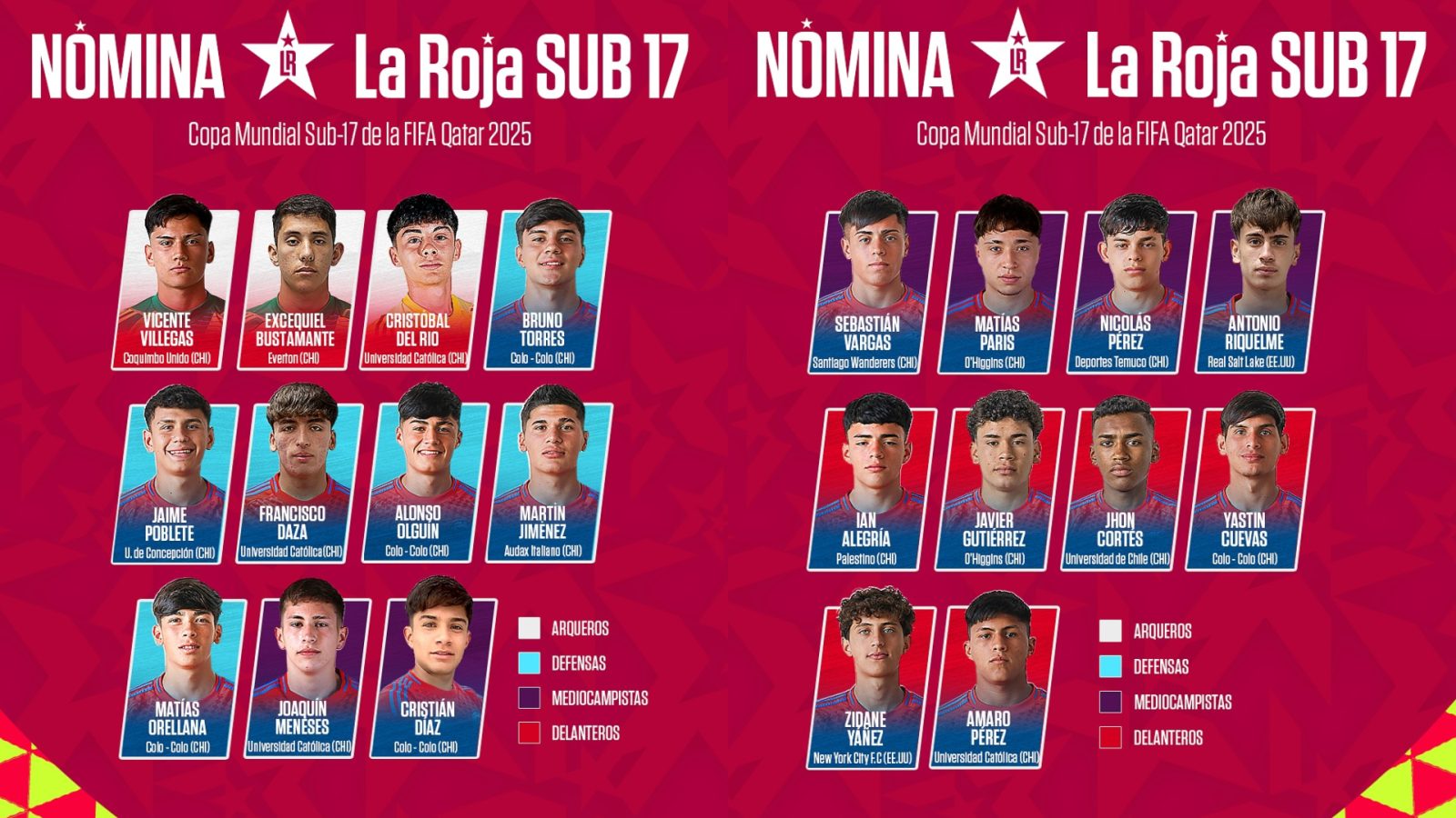 La nómina de La Roja Sub 17 para el Mundial de Qatar