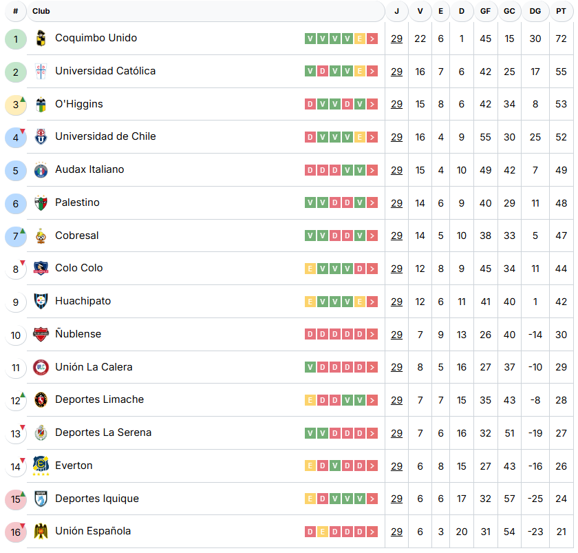 De momento, la Universidad Católica se mantiene segunda con 55 puntos, O’Higgins está tercero con 53, y la U se ubica en zona de Sudamericana con 52 unidades.