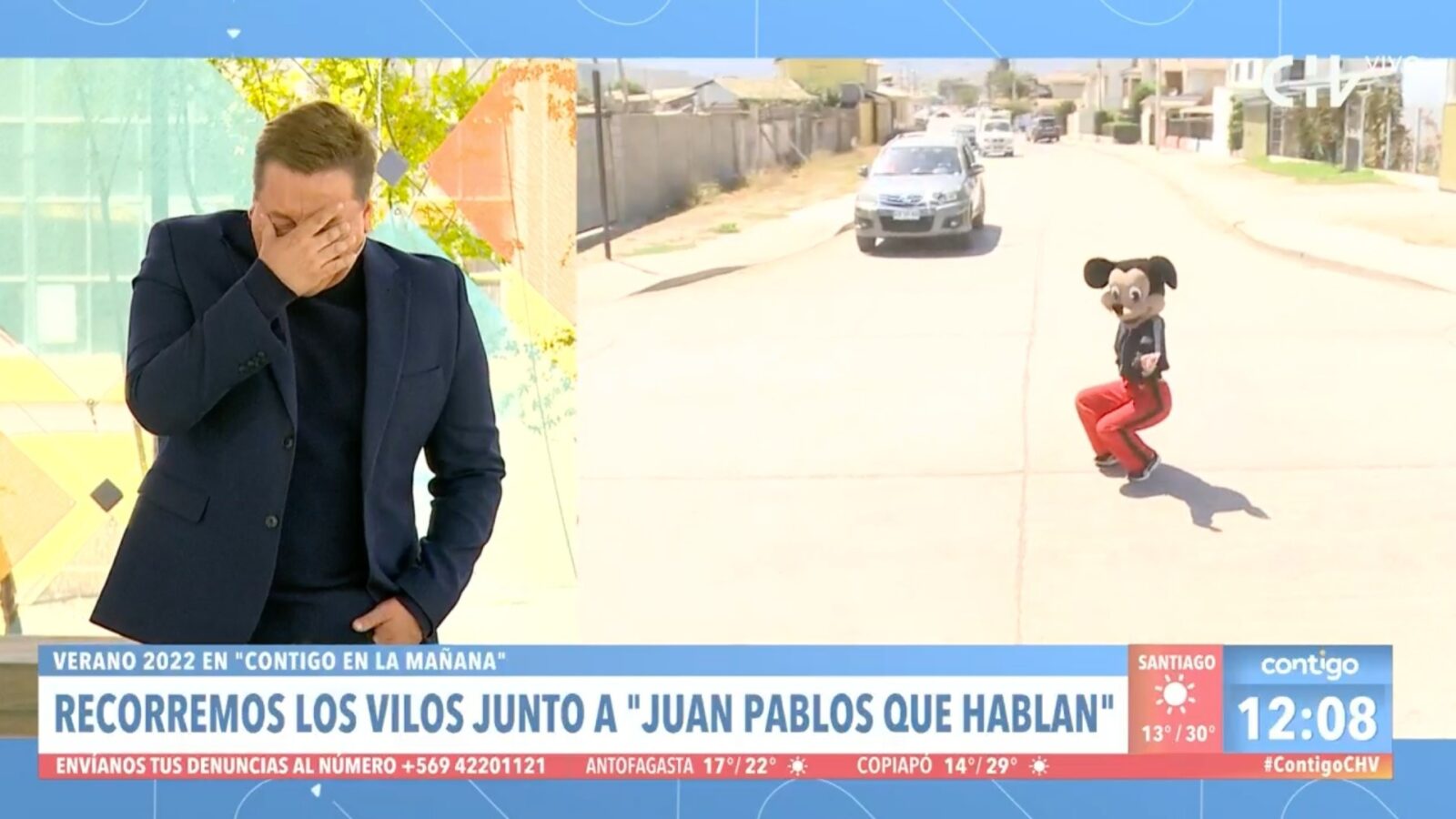“¡Tremendo show, mira! (…) Me voy a Los Vilos, está pasando de todos”, dijo el animador de Contigo en la Mañana, intentando hablar desde el estudio.