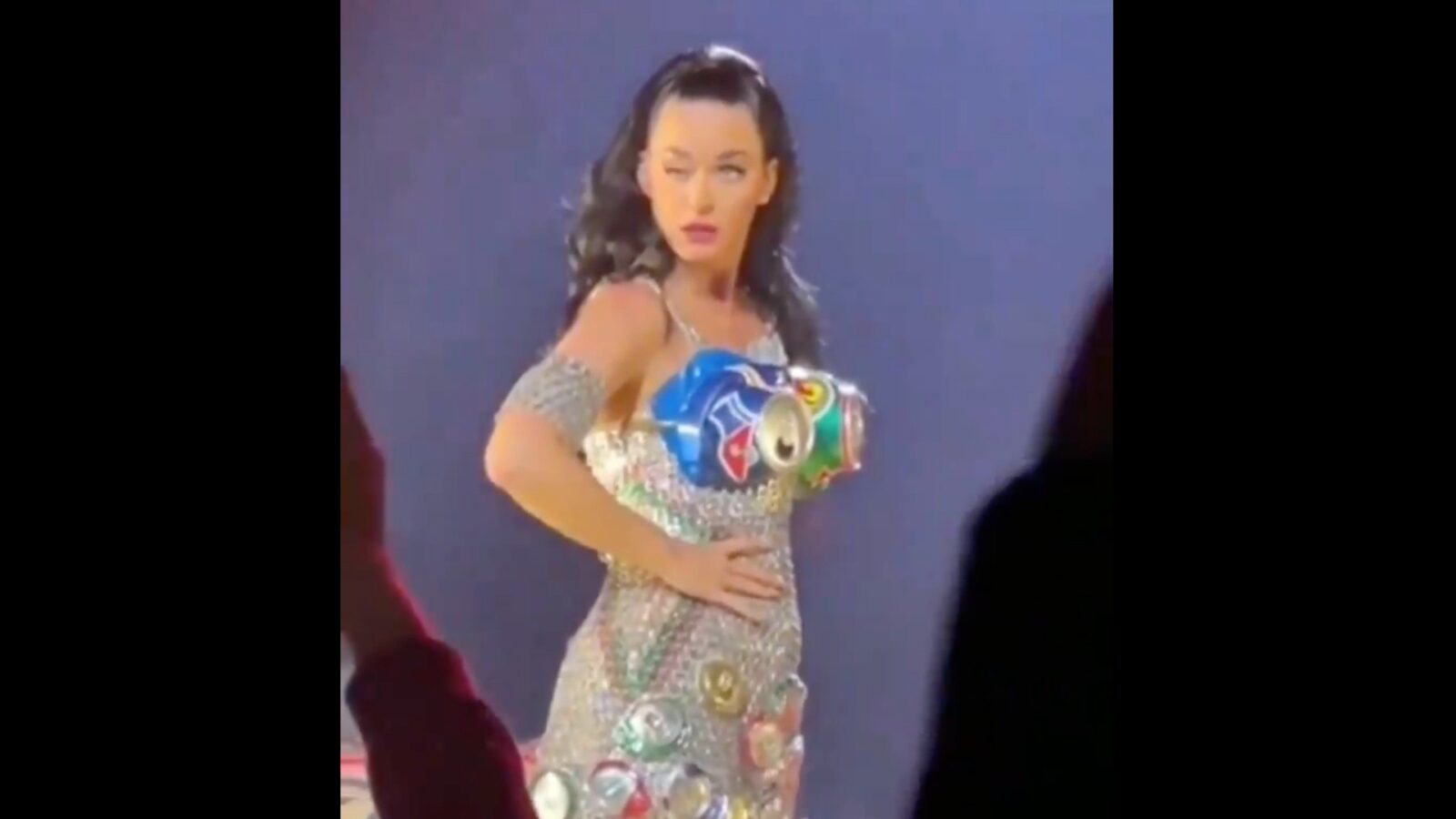 Mientras el público la aplaude y vitorea, en las imágenes es posible ver cómo Katy Perry intenta sin éxito levantar el párpado de su ojo derecho.