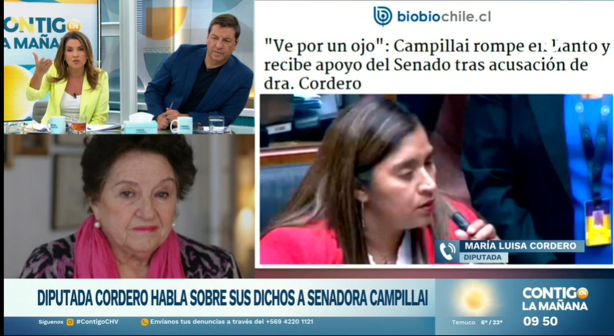 La diputada María Luisa Cordero (Ind-RN) protagonizó una tensa entrevista en el matinal Contigo en la Mañana de Chilevisión, en donde insistió en sus dichos sobre la senadora Fabiola Campillai (Ind), de quien puso en duda su ceguera.
