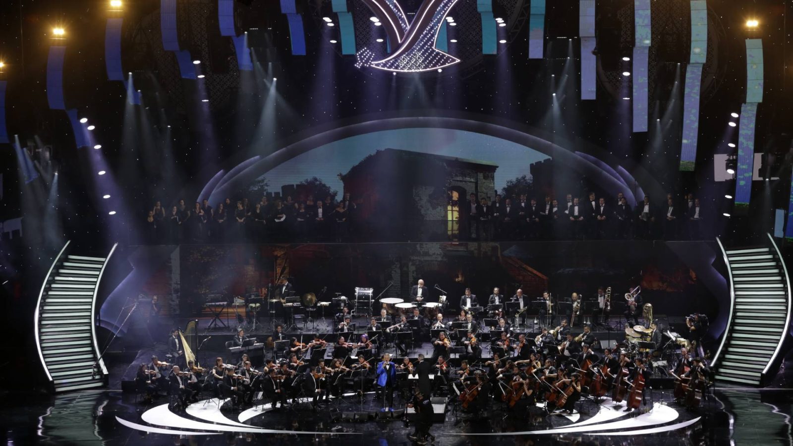 Andrea Bocelli se presentó en la segunda jornada del Festival de Viña del Mar 2024, acompañado de la Orquesta de Santiago, marcando un récord en el certamen al subir al escenario de la Quinta Vergara a más de 100 músicos.