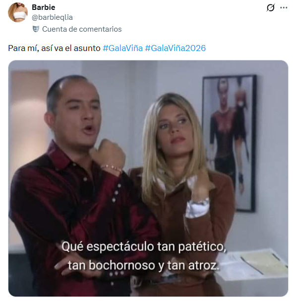 La Gala del Festival de Viña del Mar 2026 se convirtió, una vez más, en uno de los eventos más comentados del verano chileno, donde los memes tuvieron su propio protagonismo en redes sociales.