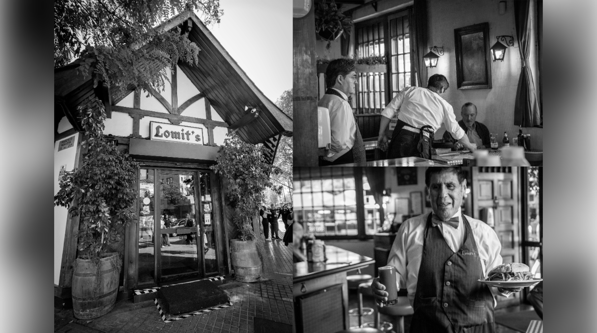 Eso es, una mezcla, porque los tipos solitarios de la barra no tienen mucho que ver con las familias que se instalan en las mesas más grandes del comedor o con los más jóvenes que por lo general prefieren instalarse en la terraza. Pero me atrevería a decir que el corazón del Lomit’s está en la barra y en esos seres anónimos que, generación tras generación, pasan sus días ahí. Hace algunos años el escritor Javier Badal los describía de la siguiente manera: “Si hay un tipo que refleja con cierta exactitud eso que se denomina clase media chilensis, es precisamente aquel que, acogido amablemente por la barra de este clásico establecimiento, ocupa a diario una buena parte de la tarde y el comienzo de la noche en empinar el codo y charlar animadamente con sus colegas”.
