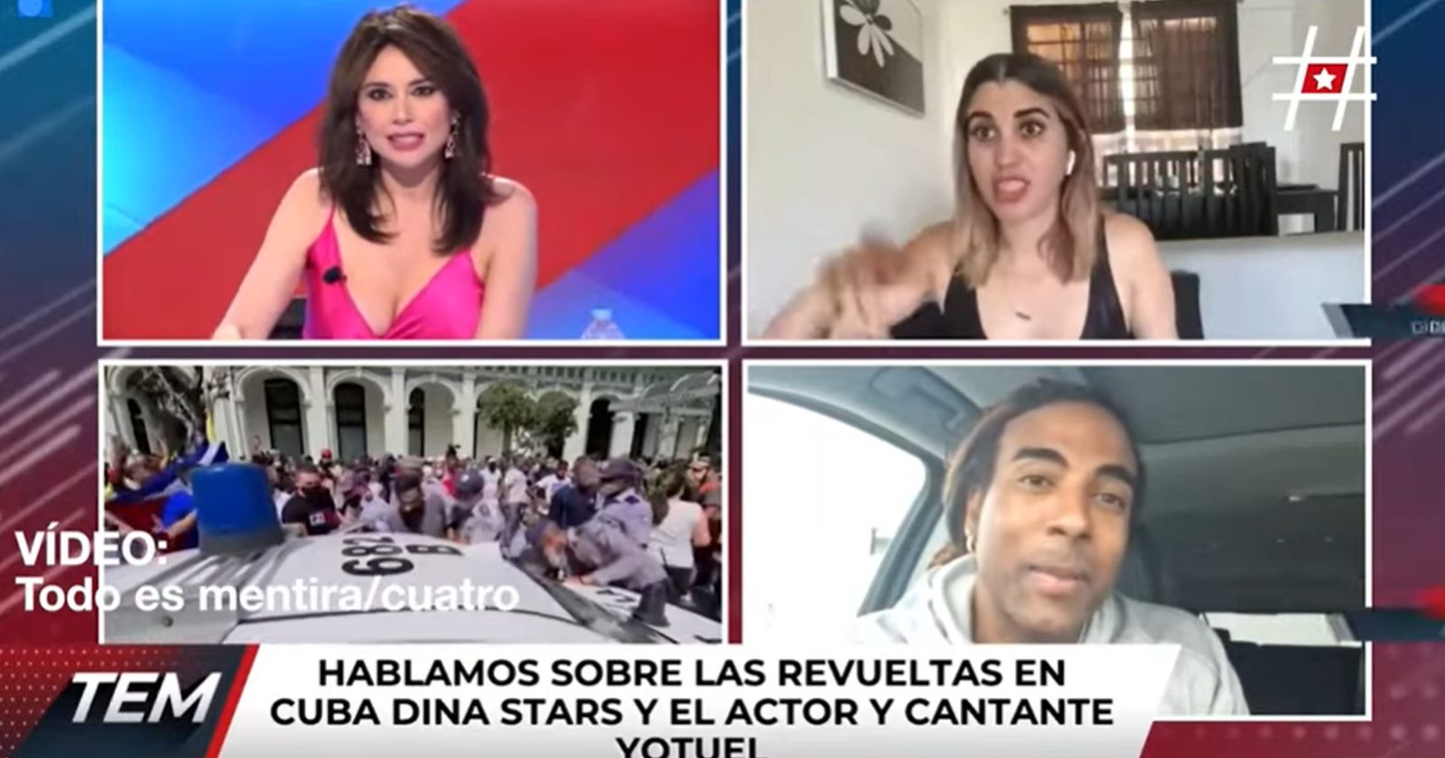 La joven, que a través de sus plataformas ha compartido material sobre las manifestaciones en su país, se encontraba en pleno contacto con el programa Todo es mentira del canal Cuatro cuando informó que los equipos de seguridad habían golpeado la puerta de su casa en La Habana.