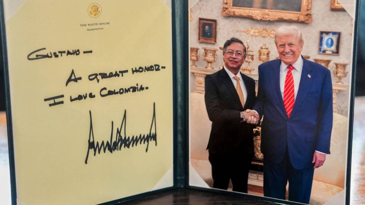 Tras la cita, Petro reveló en redes sociales que Trump le entregó un obsequio: una tarjeta con el mensaje “Gustavo. Un gran honor. Amo a Colombia”, junto con una fotografía de ambos posando, luego de una conversación que se extendió por dos horas.