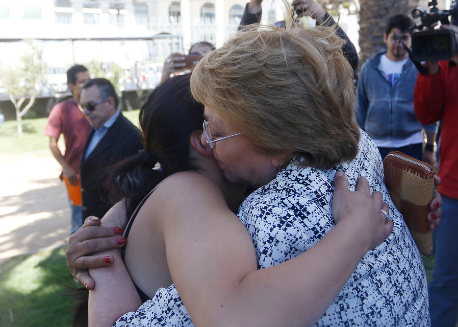 Dado que el jefe comunal restringió la entrada de la prensa al recinto para resguardar la sobreexposición de las víctimas y proteger su integridad, los medios debieron esperar afuera para obtener las impresiones de Bachelet.