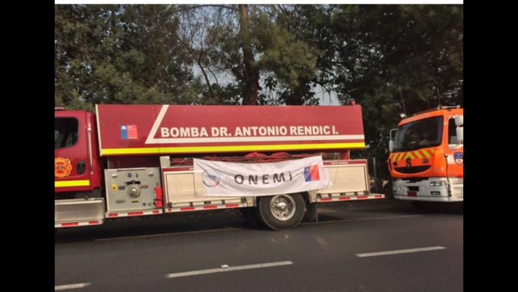 La tarde de este sábado, dos carros de Bomberos que provenían desde el norte de Chile y que se sumarían a combatir las llamas en la zona centro sur del país estuvo detenido durante dos horas sólo para tomarles una foto con el logo de la Oficina Nacional de Emergencias (Onemi).