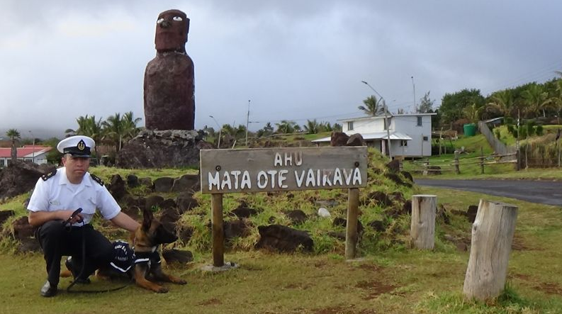 El sábado 5 de agosto marcó un hito histórico para la Gobernación Marítima de Hanga Roa. Hasta Isla de Pascua arribó “Vector”, un can de raza Pastor Belga Malinois de 1 año de edad, que se convirtió en el primer perro destinado a apoyar las labores de la Policía Marítima en el combate al narcotráfico en buques y yates que arriben a Isla de Pascua provenientes de algún puerto del país o del extranjero, principalmente de la Polinesia Francesa.