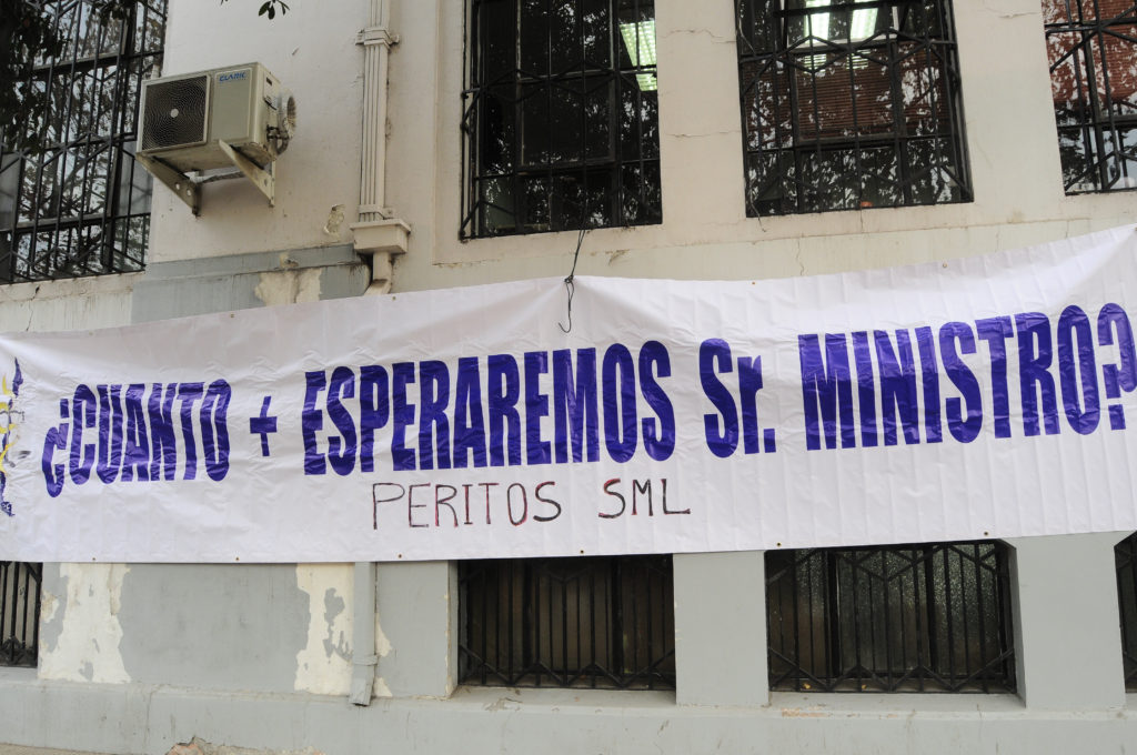 La movilización, que es la tercera del año, busca mejorar las condiciones laborales del servicio, así como también denunciar el retraso del proyecto de ley que ellos entregaron al Ministerio de Justicia en 2015.