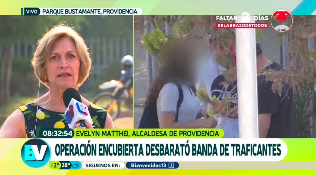 La alcaldesa de Providencia, Evelyn Matthei, se refirió a la operación encubierta que se llevó a cabo en el Parque Bustamente, que logró desbaratar a una banda de narcotraficantes. Esto ocurrió dos meses después de la que se llevó a cabo en septiembre, donde se detuvo por segunda vez al cabecilla de la agrupación.