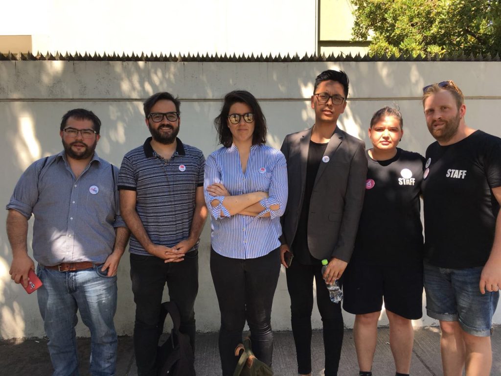 Esta tarde el presidente ejecutivo de Fundación Iguales, Juan Enrique Pi, junto con la directora de Educación, Isabel Amor, y representantes de distintas organizaciones de la diversidad sexual como OTD Chile y Acción Gay, llegaron hasta el comando del ex presidente y candidato presidencial, Sebastián Piñera, para mostrar su rechazo a los dichos emitidos hoy en en debate de ARCHI.