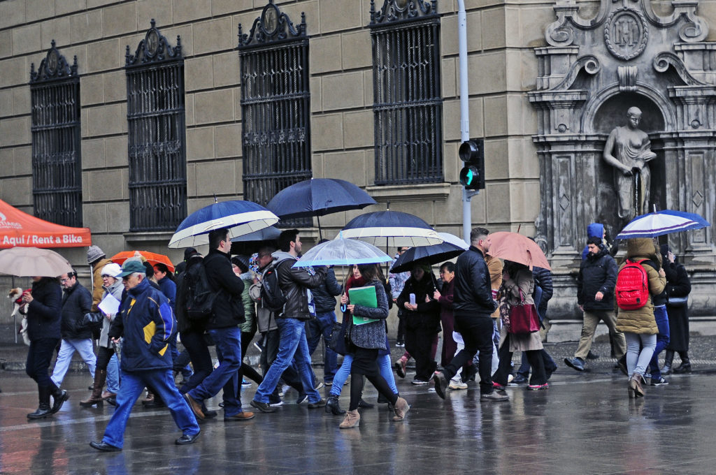 “Durante las próximas horas nos encontraremos con precipitaciones intermitentes en la Región Metropolitana. Durante horas del día, pero particularmente a las 18:00 horas, esas condiciones de viento podrían incrementarse hasta tener ráfagas de hasta 60 kilómetros y vientos promedio de 40 a 50 kilómetros por hora“, indicó el director regional de la Onemi, Rodrigo Rojas.