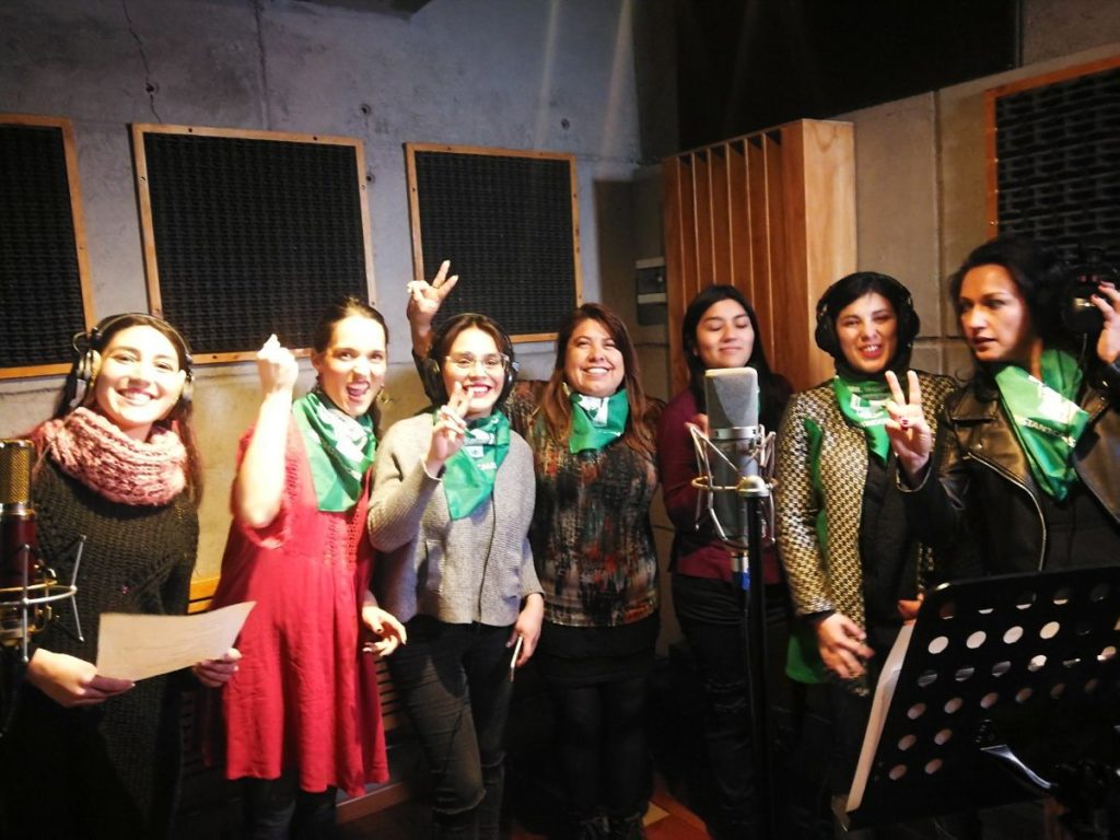 Junto a las diputadas @Claudia_Mix, @KarolCariola, @Camila_RojasV y @mjbellop estuvimos Grabando el himno por el #AbortoLegal ¡Se viene lanzamiento! 🎙 pic.twitter.com/99TfGAzZRp