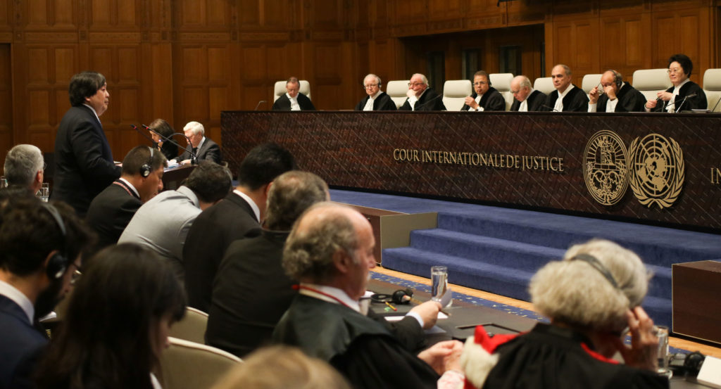 Este juicio fue caratulado como “Obligación de negociar un acceso al Océano Pacífico“. Les recuerdo que los idiomas oficiales de la CIJ son el inglés y francés y que el demandante se pone primero que el demandado.