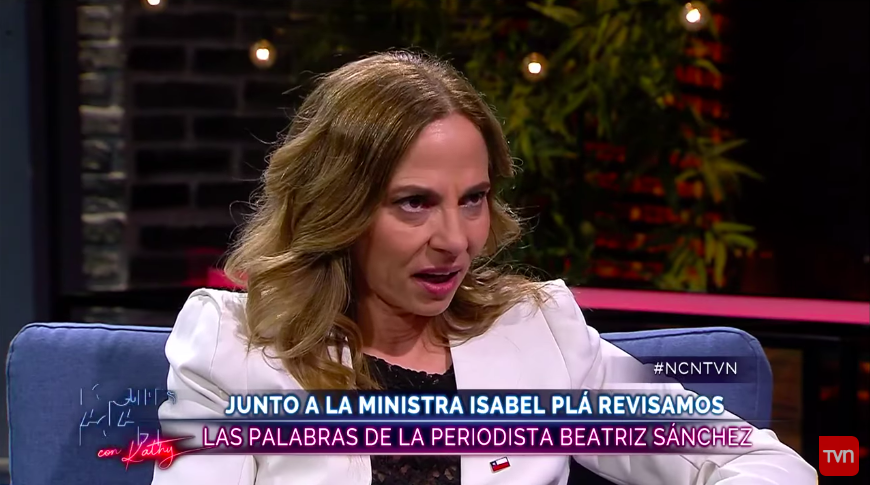 La ministra de la Mujer y la Equidad de Género, Isabel Plá, estuvo en el programa No Culpes a la Noche de TVN, donde repasaron junto a Katherine Salosny las declaraciones que le dedicó Beatriz Sánchez en dos oportunidades.