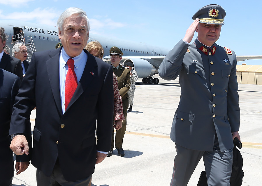 Durante su viaje a Iquique este martes, el Presidente Sebastián Piñera se reunió con el comandante en jefe del Ejército, Ricardo Martínez, en el marco del inicio de operaciones de la Fuerza de Tarea Macrozona Norte, denominado “Plan Frontera 2”.