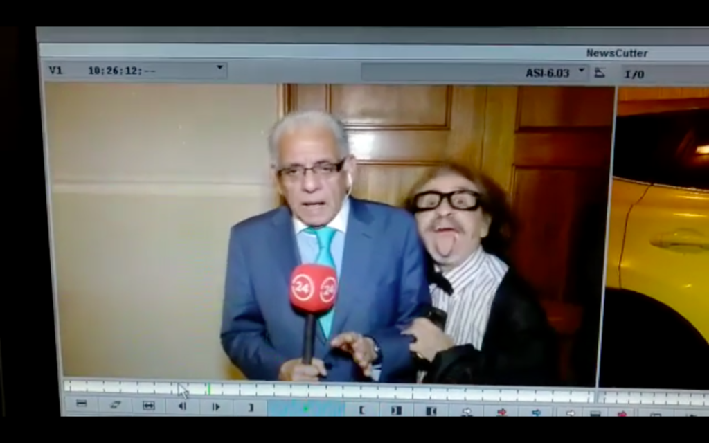Comentaba esto cuando un hecho lo desconcertó por completo. El reportero no vio venir al diputado del Partido Humanista, Florcita Alarcón, quien se coló frente a la cámara.