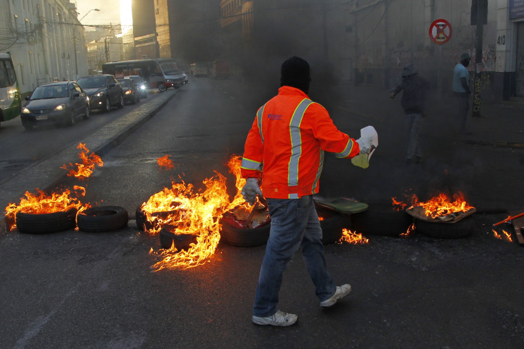 Los incidentes se iniciaron alrededor de las 7:30 horas en Errázuriz con Cochrane, donde los manifestantes protagonizaron desórdenes supuestamente en protesta por el incumplimiento de algunos acuerdos alcanzados para deponer el paro portuario.