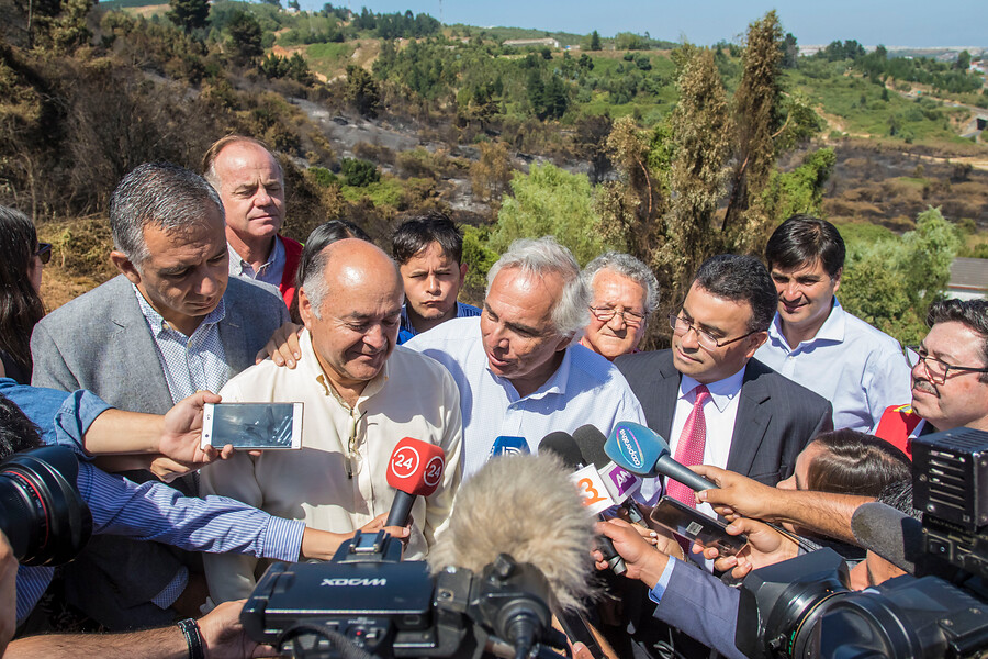 Tras ello, las autoridades se dirigieron a Villa Italia, lugar donde, tras conversar con los vecinos y evaluar en terreno las consecuencias que dejaron los incendios forestales en el sector, el ministro Chadwick habló sobre el tenso momento.
