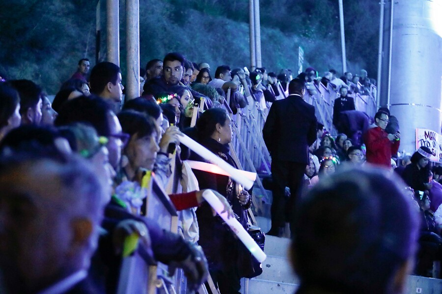 Y es que se registran cerca de 300 personas en las escaleras de acceso a la Quinta Vergara, con gran cantidad de mujeres y niños, los que se acercaron a los muros divisores de los sectores para tratar de observar el escenario.