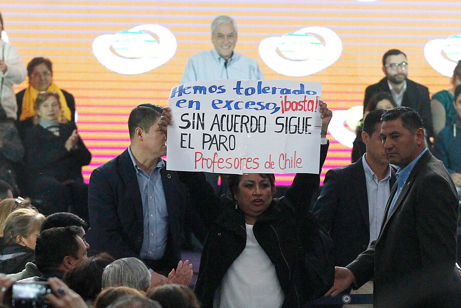 En las afueras del recinto, un grupo de docentes apuntó sus gritos hacia la ministra de Educación, Marcela Cubillos. Mientras que en el interior del gimnasio hubo gritos y consignas mientras se desarrollaba la actividad, según consignó La Tercera.