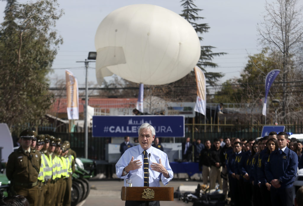 “Quiero decir que este globo de vigilancia existe en nuestro país. Está en la comuna de Lo Barnechea y ha sido extraordinariamente eficaz. De hecho, ha permitido reducir los delitos en esa comuna en más de un 60 por ciento”, dijo Piñera.
