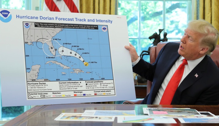 Ante decenas de periodistas, el presidente de los Estados Unidos aseguró que el mapa era el pronóstico original del paso del huracán Dorian, pero una imagen similar publicada por la Casa Blanca la semana pasada no incluía ningún impacto en Alabama en su pronóstico.