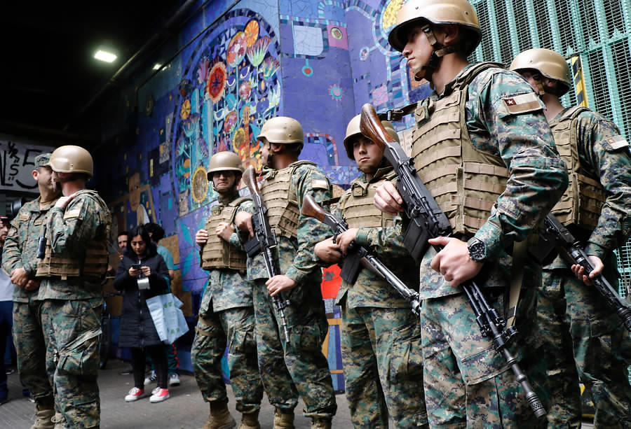 Personal del Ejército apareció durante la mañana de este sábado en diversos puntos de Santiago, esto en medio del Estado de Emergencia decretado por el Gobierno debido a las graves protestas del viernes por el alza del pasaje del Metro.