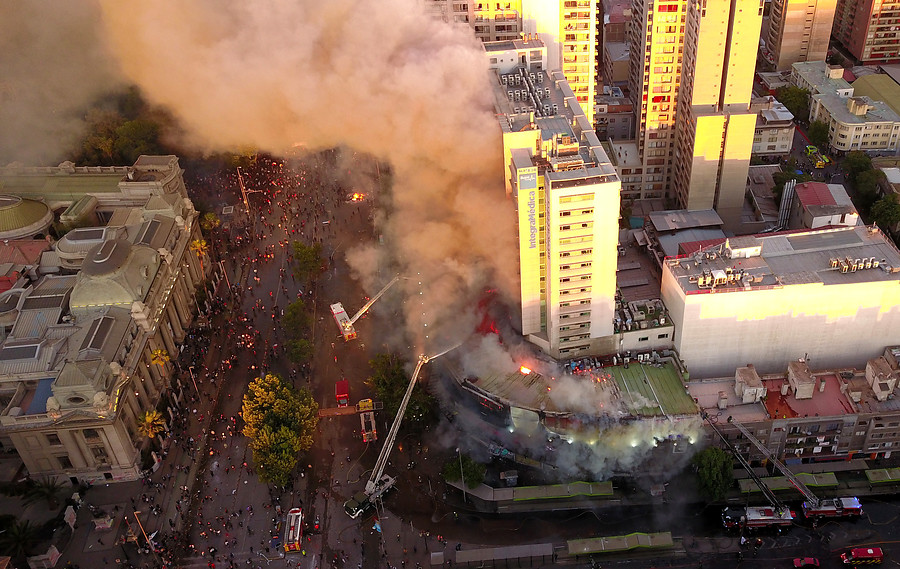 Un incendio en el centro de Santiago, específicamente en Santa Rosa con Alameda, que consumió varios locales comerciales y un centro médico, además del ataque al Compin y la Seremi de Salud, provocó un rechazo transversal a la violencia, incluyendo a sectores que hasta ahora no habían manifestado su postura.