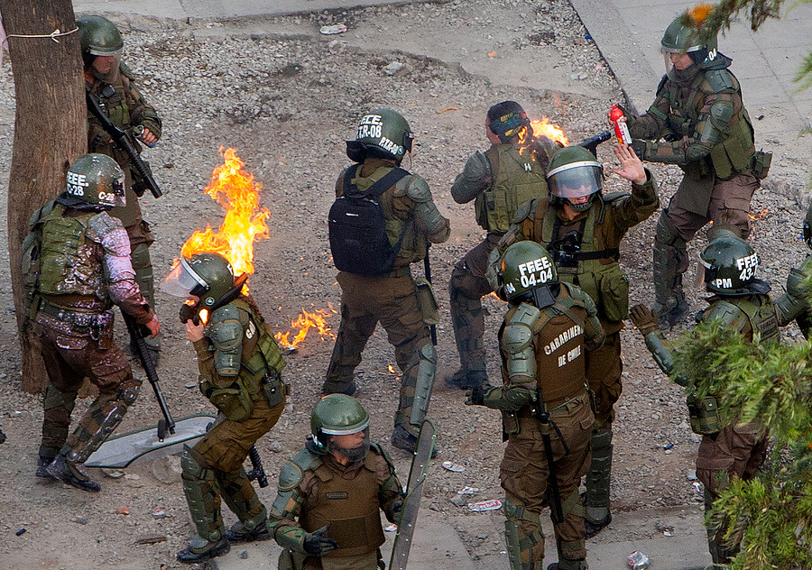 En los últimos días, se ha repetido una y otra la imagen de las dos carabineras que el pasado lunes, en medio de una masiva manifestación en Plaza Italia, fueron impactadas por una bomba molotov.
