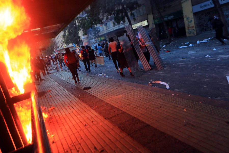 Según detalló el Ministerio Público, el individuo identificado como F.A. H. R., fue captado en cinco puntos distintos del centro de Santiago lanzando bombas molotov en un lapso de dos horas.