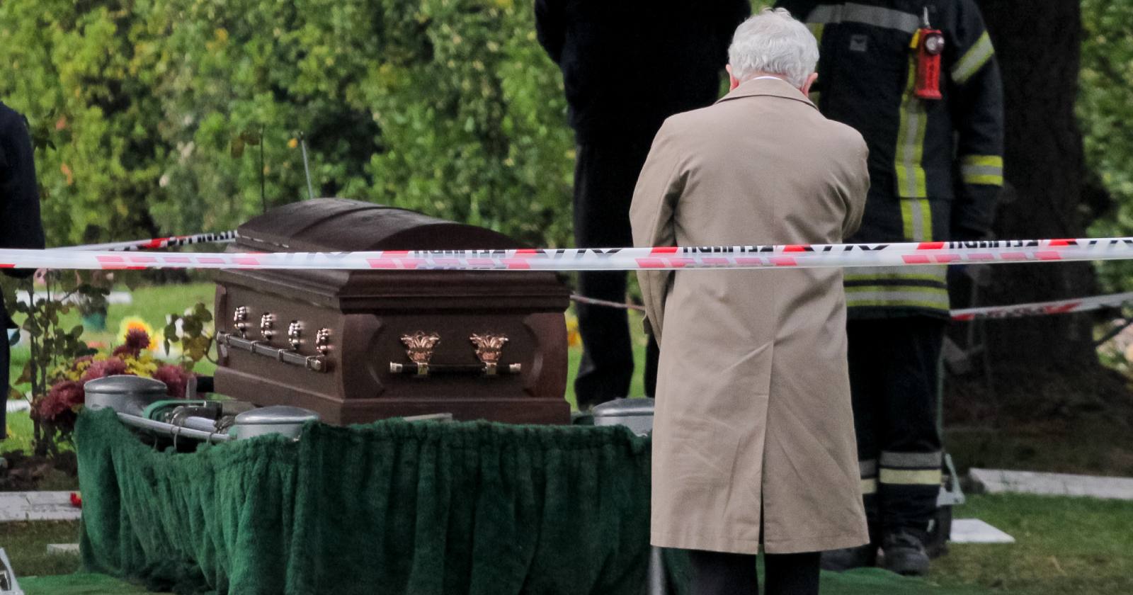 Una vez en el cementerio, como parte de un homenaje al padre del ministro Paris, esperaban el féretro Bomberos de Rancagua y Machalí, cuerpos en los que participó activamente Paris Maldonado.