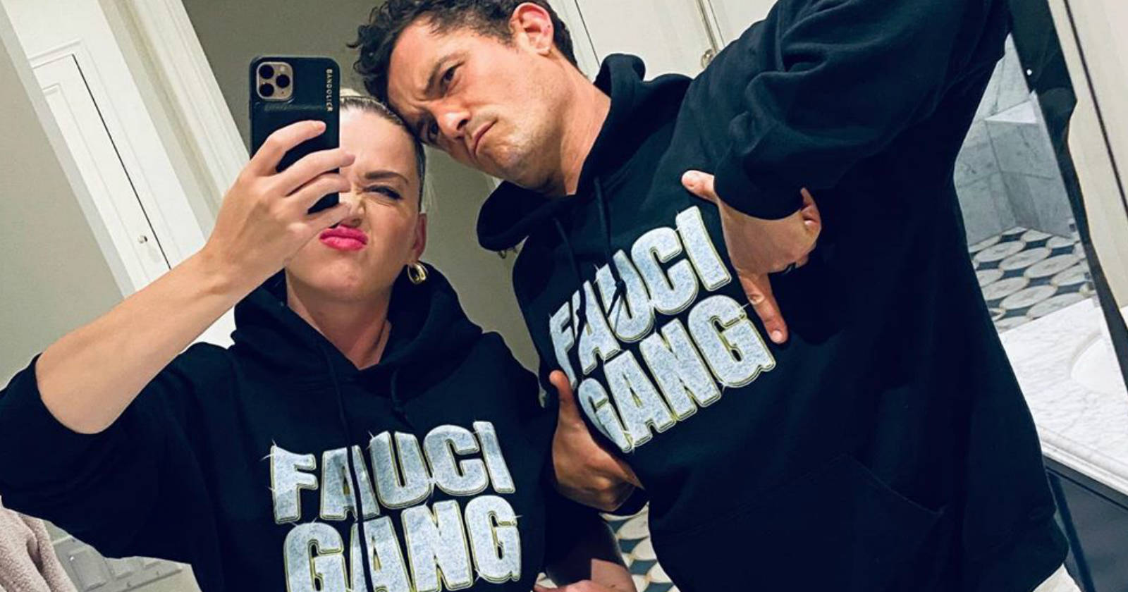 Tanto Katy Perry como Orlando Bloom compartiendo la publicación en sus respectivas cuentas personales de la red social.