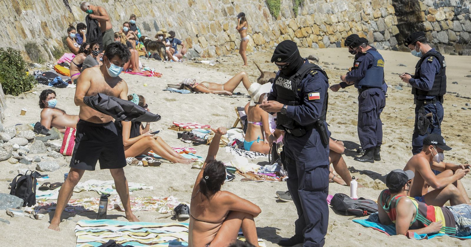 Autoridades sanitarias, en compañía de personal de la Armada, realizaron una serie de fiscalizaciones en las playas de la comuna de Concón, en la Región de Valparaíso, para detectar a los visitantes que rompieron el cordón sanitario y se movilizaron hacia Santiago para pasar las Fiestas Patrias en la zona costera.