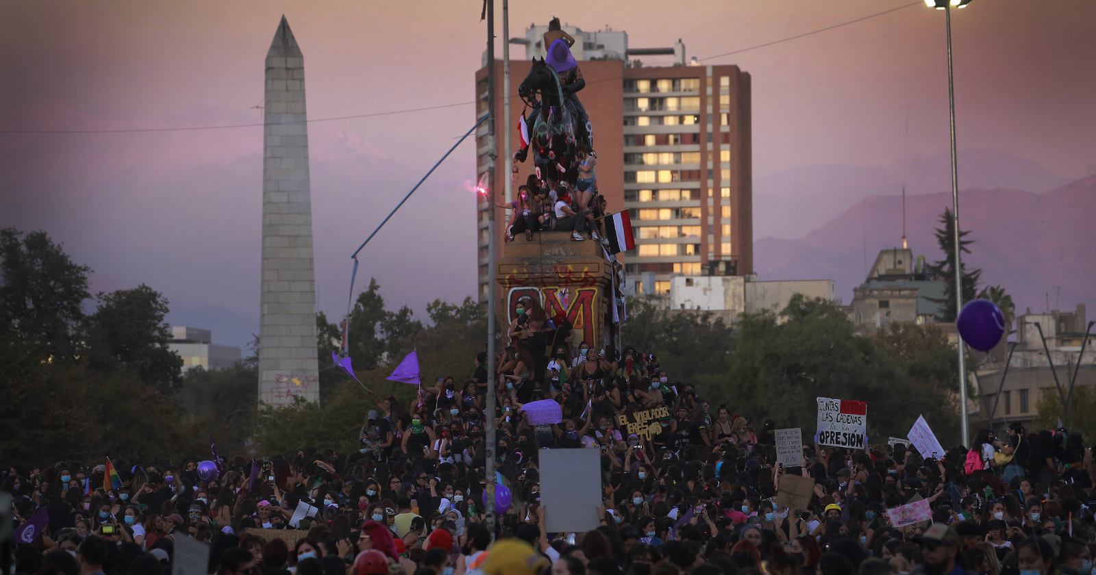 Carabineros dispersó a los manifestantes que se encontraban todavía en Plaza Italia, en el marco de la conmemoración del Día Internacional de la Mujer, luego que se registrara un nuevo intento de quema de la estatua de Baquedano.